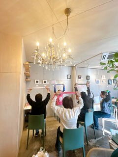 金曜日の午前、ほっと落ち着くhmcカフェの空間で、椅子ヨガ講座を開催しました。