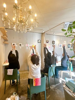 金曜日の午前、ほっと落ち着くhmcカフェの空間で、椅子ヨガ講座を開催しました。