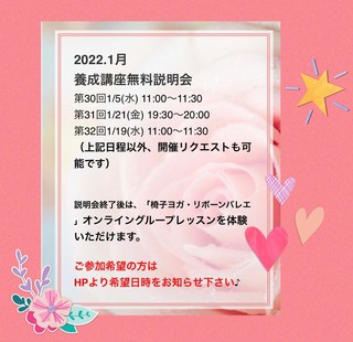 1月の無料説明会に出席の上養成講座の受講申し込みを頂いた方には、