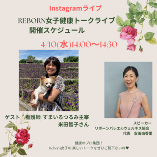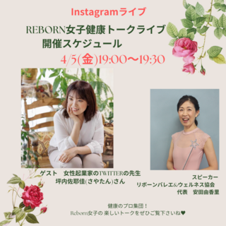 参加申し込みは、準備の都合のため前日4/19(金)17:00締切です。REBORN女子健康トークライブスタート!