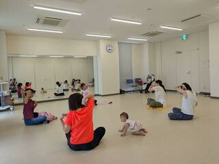 おやこヨガでは、みんなでテーマパークに行ったり抱っこで交流したり