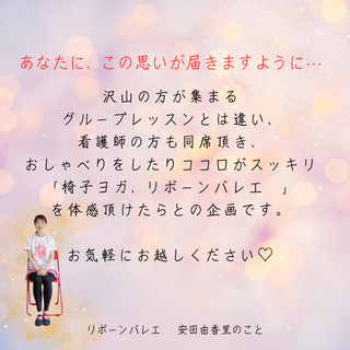 おしゃべりをしたり、ココロがスッキリできる「椅子ヨガ、リボーンバレエ 」を体感頂けたらとの企画です。