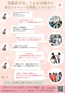 ![]() | リボーンバレエ&ウェルネス協会 080-5348-6069 10:00〜21:00(土日休) 大阪市城東区中央3-1-4 エクレーヌ橋本202 スクール案内はこちら |