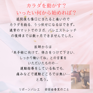 私自身が1年半前に手術を受け後、運動指導の仕事に復帰するために、