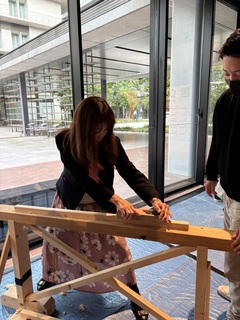 椅子を使った簡単な動きに、会場のあちらこちらで
